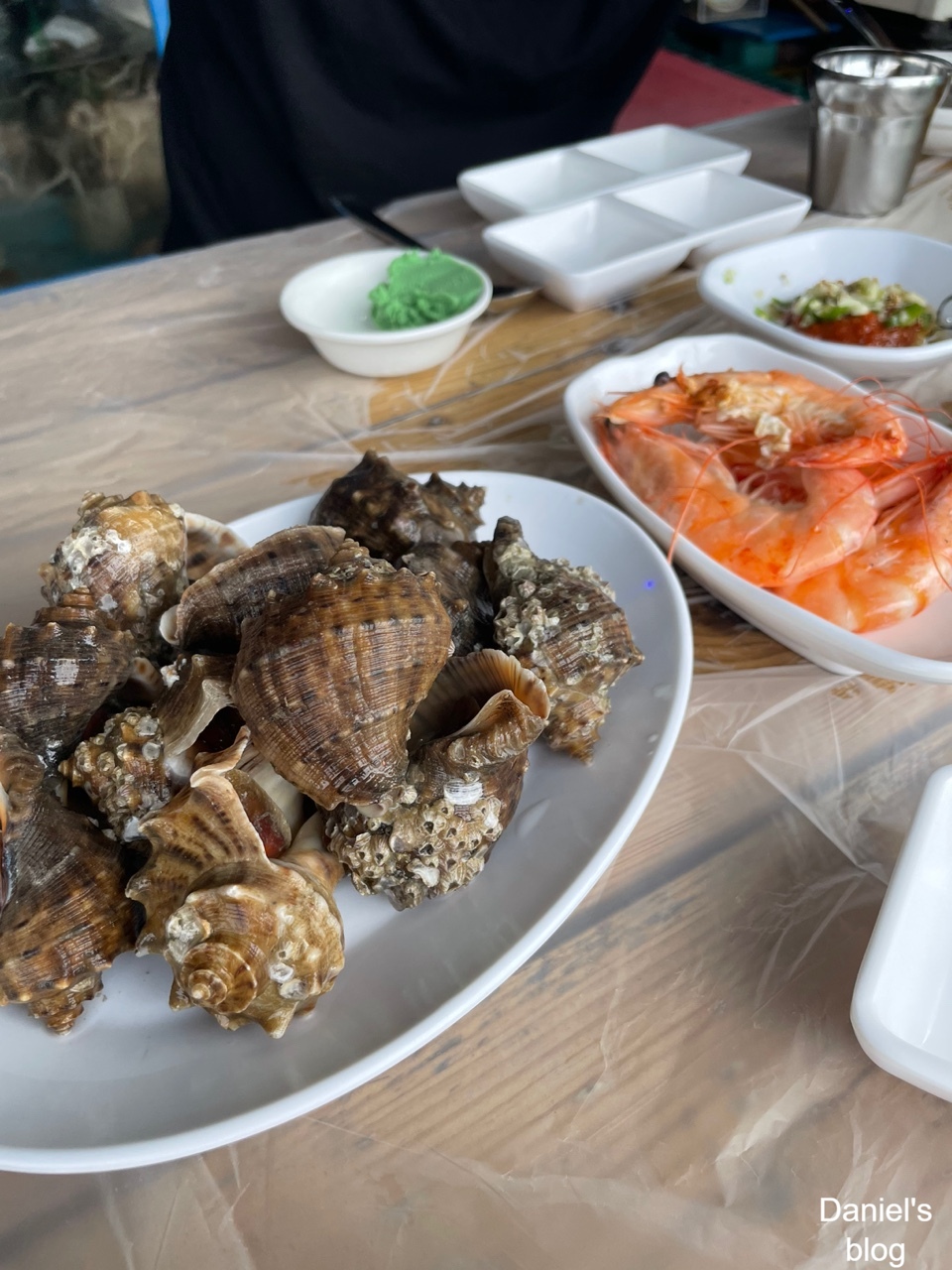 식사하는 곳 바로 앞에있는 바다 풍경입니다. 현재는 물이 빠져서 들어올 시간이 되었다는 사장님의 말씀을 듣고