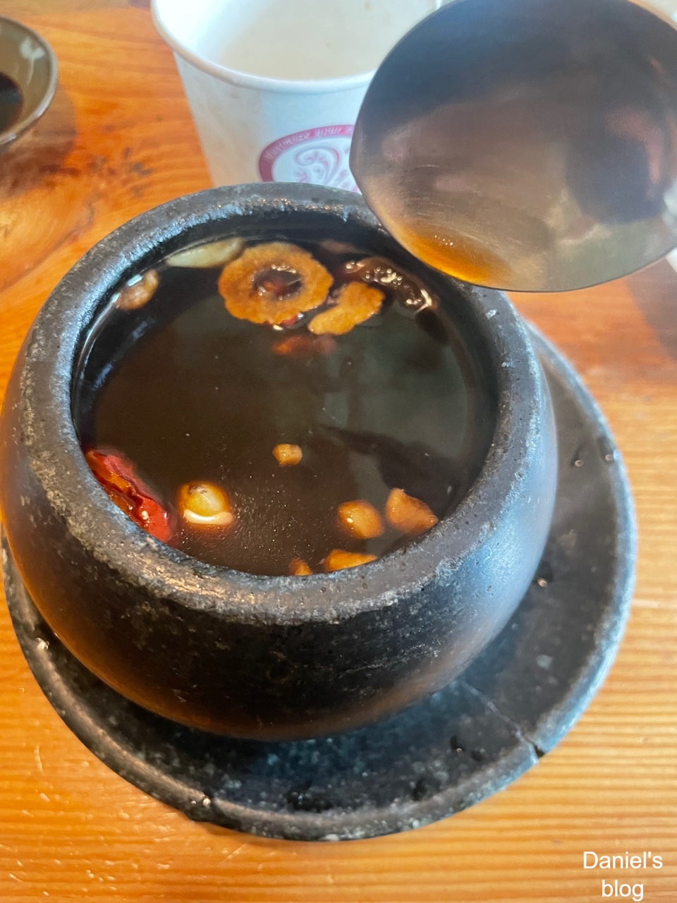 주문했던 쌍화차가 나왔습니다. 쌍화차 안에는 은행, 대추, 밤 등이 많이 들어가있어서 안에있는 내용물만 먹다가